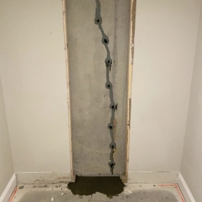 The solution to fixing this issue is crack repair. This waterproofing technique entails injecting epoxy or urethane resin into cracks in the concrete walls. The cracks are then sealed using hydraulic cement or another suitable topical material. This process effectively stops moisture seepage, ensuring a watertight barrier to keep your basement floor and walls dry.