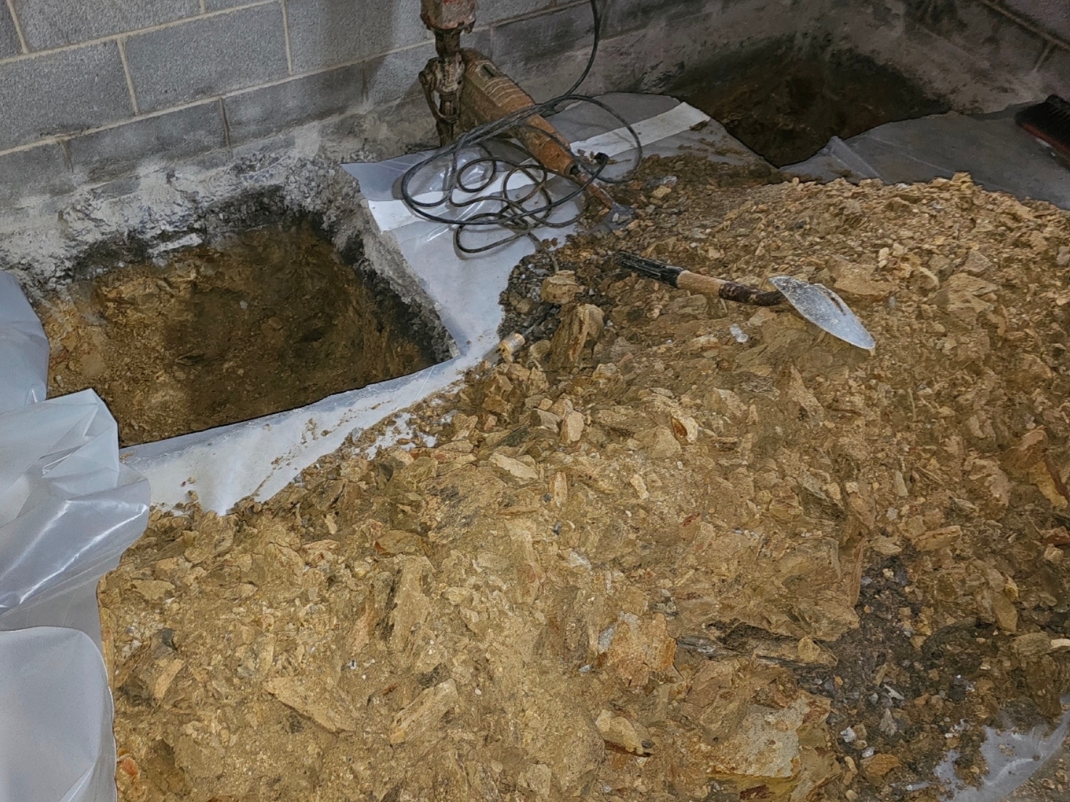 Our team began by carefully excavating around the basement’s footing to prepare for the push pier installation. We ensured minimal disturbance to the surrounding area and safeguarded the home’s existing waterproofing system.